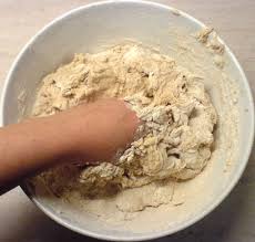 *Κάνουµε ἕνα σταυρό στό ἀλεύρι καί ἐκεῖ µέσα τοποθετοῦµε τό προζύµι.