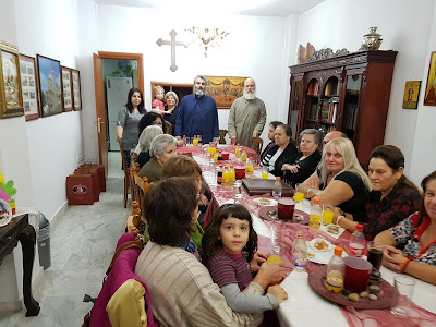 Πάνω από τριάντα γυναίκες μαζεύτηκαν στην μικρή αυτή εορταστική συνάντηση για να μπορέσει ο π. Χρυσόστομος να τις ευχαριστήσει για την μεγάλη προσπάθεια που κατέβαλαν και φέτος ώστε να γίνει η Πανήγυρις των Αγίων της γειτονιάς των Ανθοκήπων της Νέας Ευκαρπίας.