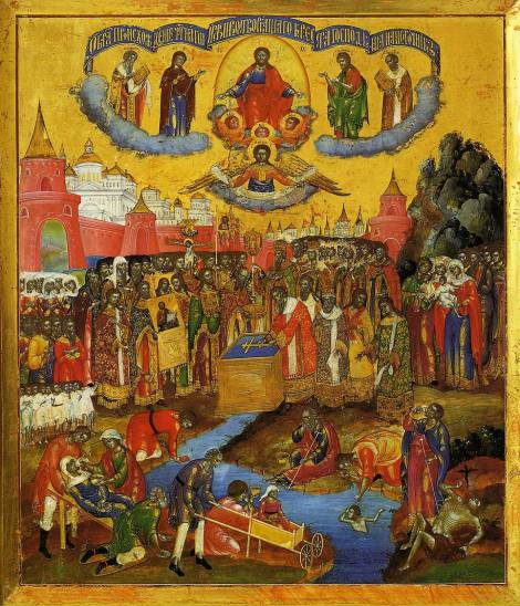 * ΟΙ ΑΓΙΟΙ ΕΠΤΑ ΜΑΚΚΑΒΑΙΟΙ, ΑΒΕΙΜ (ή ΑΒΙΒΟΣ), ΑΝΤΩΝΙΟΣ (ή ΑΝΤΩΝΙΝΟΣ), ΓΟΥΡΙΑΣ, ΕΛΕΑΖΑΡΟΣ, ΕΥΣΕΒΩΝΑΣ, ΑΧΕΙΜ, ΜΑΡΚΕΛΛΟΣ (ή ΣΑΜΩΝΑΣ ή ΕΥΛΑΛΟΣ ή ΜΑΡΚΟΣ), η μητέρα τους ΣΟΛΟΜΟΝΗ και ο διδάσκαλός τους ΕΛΕΑΖΑΡΟΣ. ********** "Αυτοκράτωρ εστί των παθών ο ευσεβής λογισμός" (Δ. Μακκαβαίων, α' 7, θ'4.) Ο ευσεβής λογισμός είναι κυρίαρχος και εξουσιαστής επί των παθών. Αυτό με περίσσια ανδρεία απέδειξαν οι επτά αδελφοί Μακκαβαίοι με τη στάση τους απέναντι στο βασιλιά της Συρίας, Αντίοχο, όταν αυτός τους έταξε δόξες, τιμές και επίγειες απολαύσεις, αν αυτοί καταπατούσαν το Μωσαϊκό νόμο και έτρωγαν από τα απαγορευμένα φαγητά που τους πρόσφερε. Προηγήθηκε ο ενενηκονταετής διδάσκαλός τους, Ελεάζαρος, που εφάρμοσε στο έπακρο το νόμο που τους δίδασκε, με αποτέλεσμα ο Αντίοχος να τον ρίξει στη φωτιά. Εμπνεόμενα από τη θυσία του γέροντα διδασκάλου τους, τα επτά αδέλφια κράτησαν την ίδια γενναία στάση απέναντι στο βασιλιά, όταν τους κάλεσε μπροστά του. Στην αρχή ο Αντίοχος προσπάθησε να τους κολακεύσει με διάφορα εγκώμια για τη νιότη τους. Τους είπε ότι αν έτρωγαν από τα ειδωλόθυτα που τους πρόσφερε, θα απολάμβαναν μεγάλες τιμές και φυσικά θα τους έσωζε από το θάνατο. Τότε οι επτά αδελφοί απάντησαν στον Αντίοχο: "χαλεπώτερον γαρ αυτού του θανάτου νομίζομεν είναι σου τον επί τη παρανομώ σωτηρία ημών έλεον". Δηλαδή, είναι περισσότερο επιβλαβής και απ' αυτόν το θάνατο, νομίζουμε, η συμπάθειά σου για την παράνομη σωτηρία μας. Εξοργισμένος τότε ο Αντίοχος, με τροχούς, φωτιά και ακόντια, έναν-έναν τους σκότωσε όλους. Όταν είδε αυτό η μητέρα τους Σολομονή, ρίχτηκε μόνη της στη φωτιά και έτσι όλοι μαζί πήραν το στεφάνι του μαρτυρίου. *ΟΙ ΑΓΙΟΙ ΕΝΝΕΑ ΜΑΡΤΥΡΕΣ που μαρτύρησαν στην Πέργη της Παμφυλίας, ΛΕΟΝΤΙΟΣ, ΑΤΤΟΣ, ΑΛΕΞΑΝΔΡΟΣ, ΚΙΝΔΕΟΣ, ΜΝΗΣΙΘΕΟΣ, ΚΥΡΙΑΚΟΣ, ΜΗΝΑΙΟΣ, ΚΑΤΟΥΝΟΣ και ΕΥΚΛΕΟΣ (ή ΕΥΚΛΗΣ) Οι Άγιοι αυτοί μαρτύρησαν στην Πέργη της Παμφυλίας, που βρίσκεται κοντά στις όχθες του Κέστρου ποταμού. Τα ονόματά τους ήταν τα εξής: "Αττος, Αλέξανδρος, Εϋκλεος, Κατούνος, Κινδέος, Κυριάκος, Λεόντιος, Μνησίθεος και Μηναίος. Όλοι στο επάγγελμα ήταν γεωργοί, εκτός από τον Μηναίο που ήταν μαραγκός. Κατά τους διωγμούς εναντίον των χριστιανών που έκανε ο Διοκλητιανός, στην Παμφυλία συνέβαινε να είναι έπαρχος κάποιος Φλαβιανός (300 μ. Χ.) που εφάρμοζε με σκληρότητα τα αυτοκρατορικά διατάγματα. Τότε, από τους πιο θαρραλέους πιστούς, που μόνοι τους φανέρωσαν τη χριστιανική τους ιδιότητα μπροστά στον έπαρχο, ήταν και οι εννέα αυτοί Άγιοι. Αφού έκαναν το σημείο του σταυρού και κοινώνησαν των αχράντων μυστηρίων, όρμησαν όλοι μαζί στη φλόγα του κινδύνου. Παρουσιάστηκαν στον Φλαβιανό, ομολόγησαν τον Χριστό και τον παρακάλεσαν να πάψει επιτέλους να κακοποιεί τους χριστιανούς. Εξοργισμένος ο Φλαβιανός, διέταξε να τους σύρουν στο ναό της Αρτέμιδος για να θυσιάσουν στους θεούς. Εκείνοι, όχι μόνο αρνήθηκαν να θυσιάσουν, αλλά με την προσευχή τους συνέτριψαν και μερικά από τα είδωλα του ναού. Ο έπαρχος γεμάτος μανία, αφού ξέσκισε τις σάρκες τους με σιδερένια νύχια και έκαψε τις πληγές τους με αναμμένες λαμπάδες, τους φυλάκισε. Αλλά επειδή και οι εννέα επέμεναν να ομολογούν τον Χριστό, τελικά τους αποκεφάλισε. *Ο ΑΓΙΟΣ ΠΑΠΑΣ, ο νέος. "Εις σάκκον βληθείς, και θίβη εγκλεισθείς, και εις θάλασσαν ριφθείς, τελειοϋται". *Ο ΑΓΙΟΣ ΕΛΕΑΖΑΡΟΣ. Μαρτύρησε, αφού του έκαψαν το κεφάλι. *Ο ΑΓΙΟΣ ΚΗΡΥΚΟΣ. Μαρτύρησε δια αποκεφαλισμού. *Ο ΑΓ